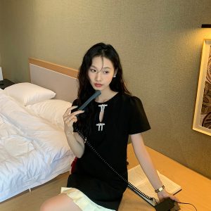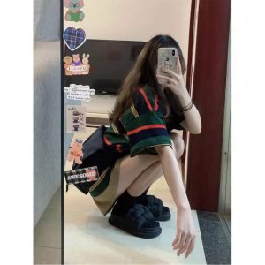 A loose-fitting and nimble half-sleeved top is versatile in Harajuku style