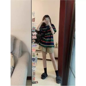 A loose-fitting and nimble half-sleeved top is versatile in Harajuku style quantity
