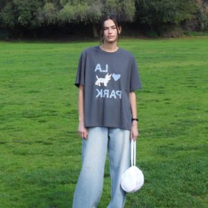 A loose-fitting and nimble half-sleeved top is versatile in Harajuku style
