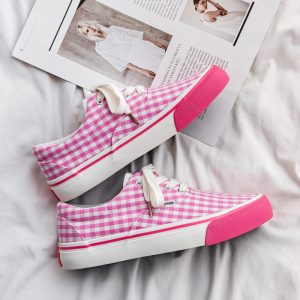 New summer pink plaid low-top canvas shoes for women